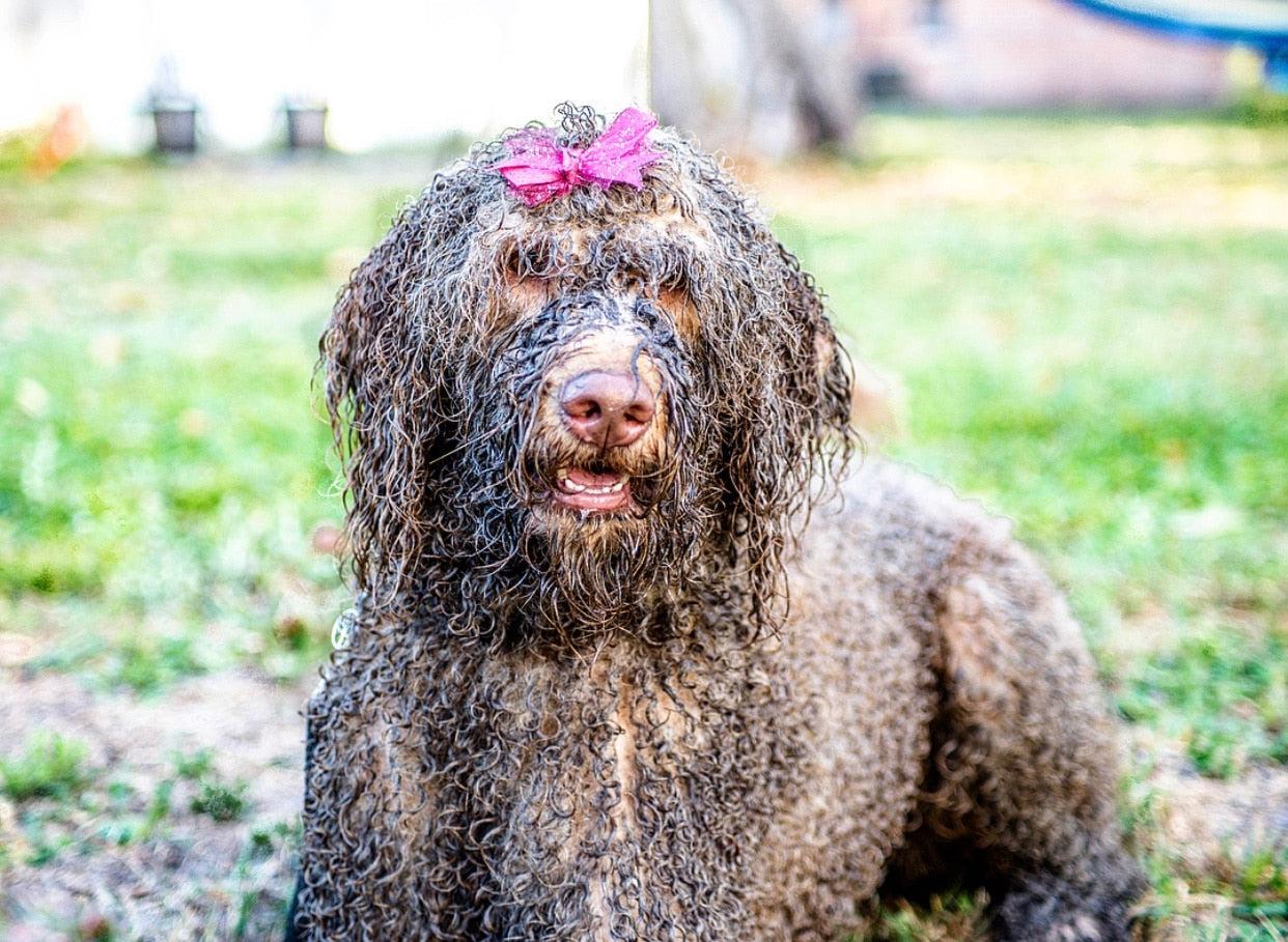From hair bows to mud holes, Francesca "Frankie" just can't get enough. Frankie is a 2-year-old Goldendoodle from central Florida. She lives to get dirty and her smile tells it all. Take your eyes off her for a minute and the next you will find her rolling around in the mud hair bow and all. Frankie is a huge fan of taking a bath, so despite her love of mud, it doesn’t take much to convince her to get cleaned up!